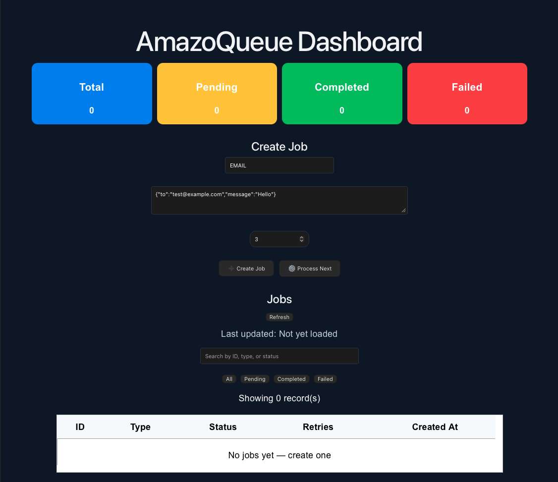 Built a full-stack asynchronous job queue system using Spring Boot, PostgreSQL and React. The system supports job creation, scheduled background processing, retry logic on failure, validation, filtering and a live dashboard for monitoring job lifecycle status.